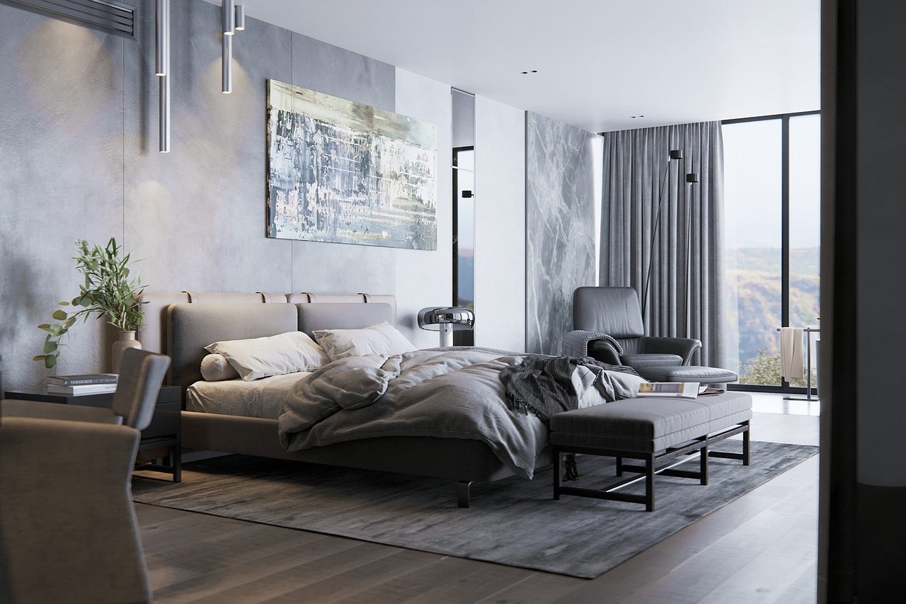 - Grau ist für seine Neutralität bekannt und ideal für moderne Schlafzimmergestaltungen.